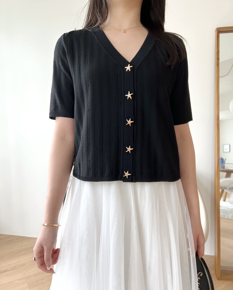 *Comment : 22 s/s SD 불가사리 가디건 고퀄리티 가디건 입니다. 베스트셀러인 인기제품으로 많이 보셨을거에요. 소재감 좋으며 휘뚜루마뚜루 여기저기 코디 하시기 편하며, 한여름까지도 사계절 활용하기좋은 가벼운 텍스쳐에요. 단독으로 입으셔도 좋고 아우터 안에 탑으로도 활용하실 수 있습니다. 넥라인은 많이 파이지 않아 편하게 착용하실 수 있어요. 버튼 퀄리티 또한 저가제품이 아닌 퀄리티 높은 제품으로 더욱 더 고급스럽게 마감하였습니다. 세련된 가디건 제품 적극 추천드립니다.