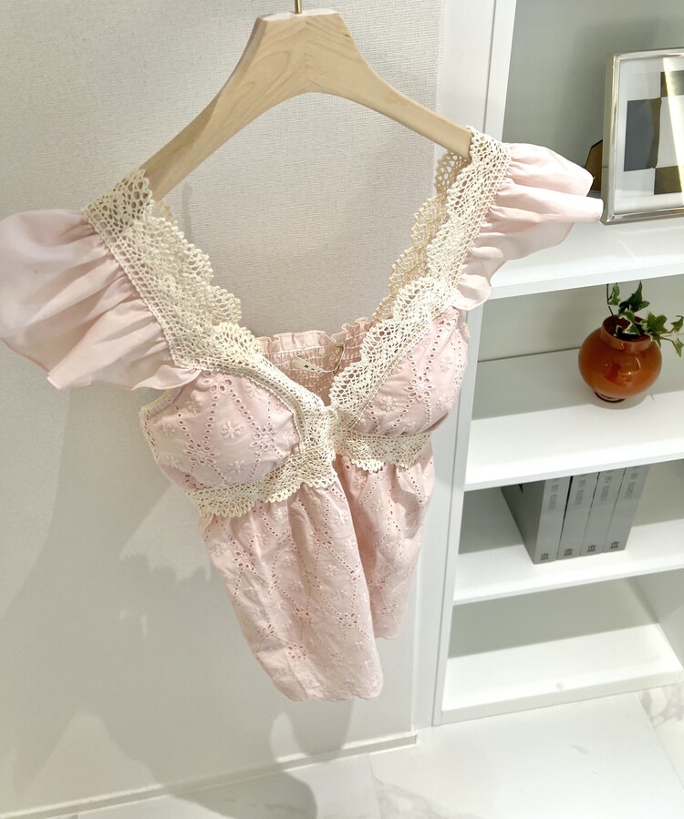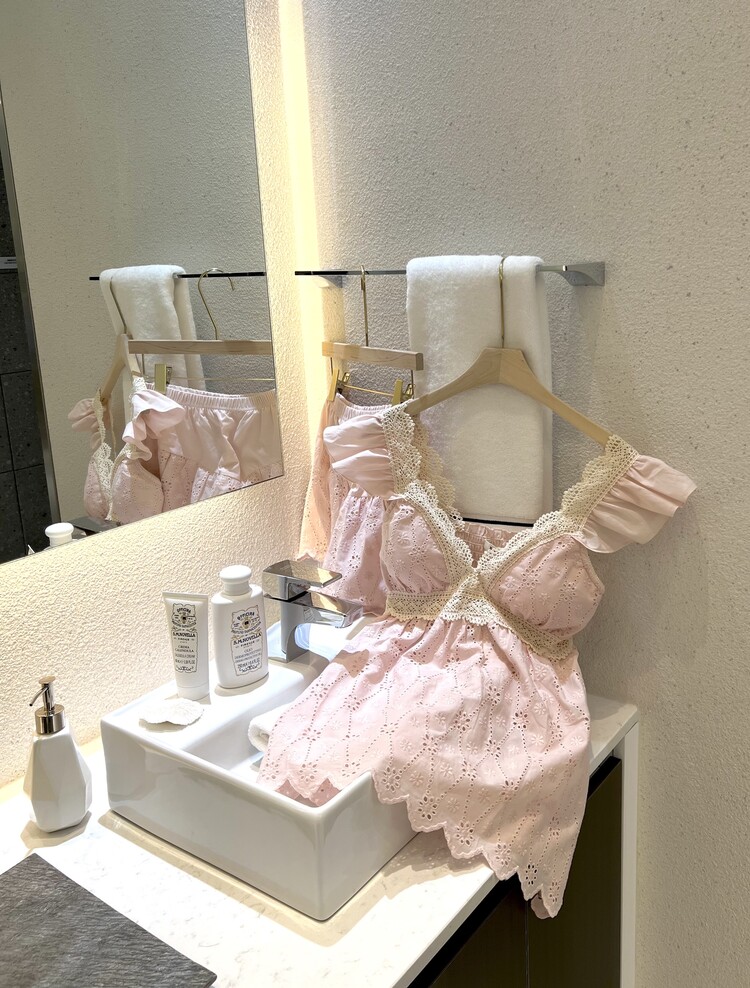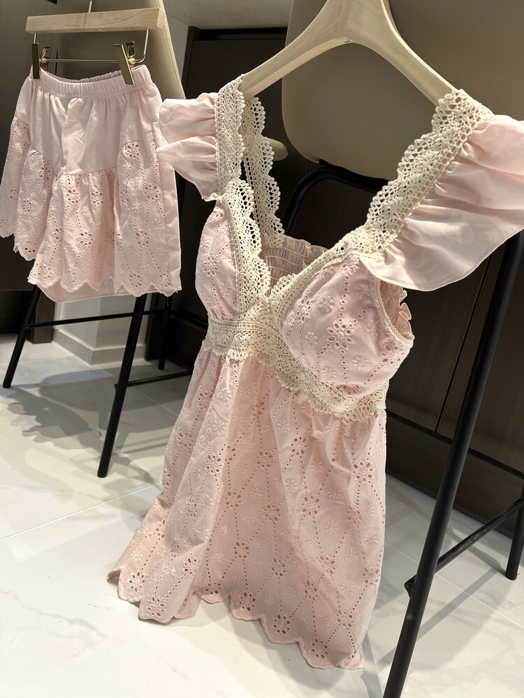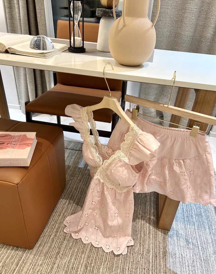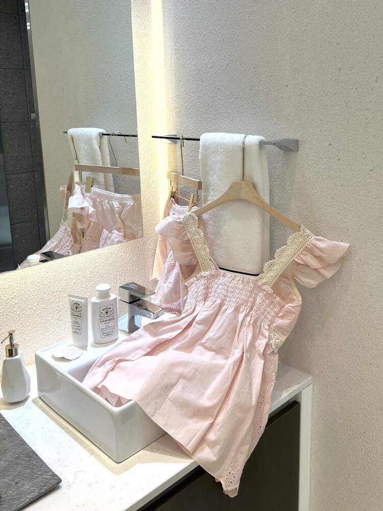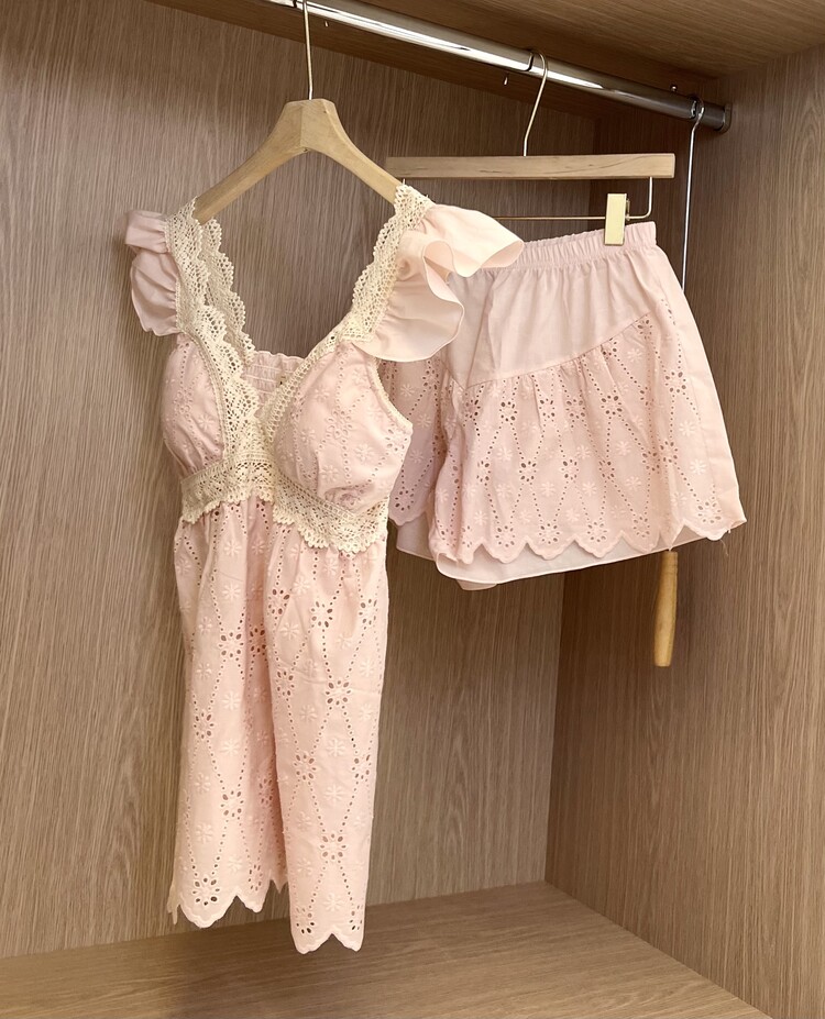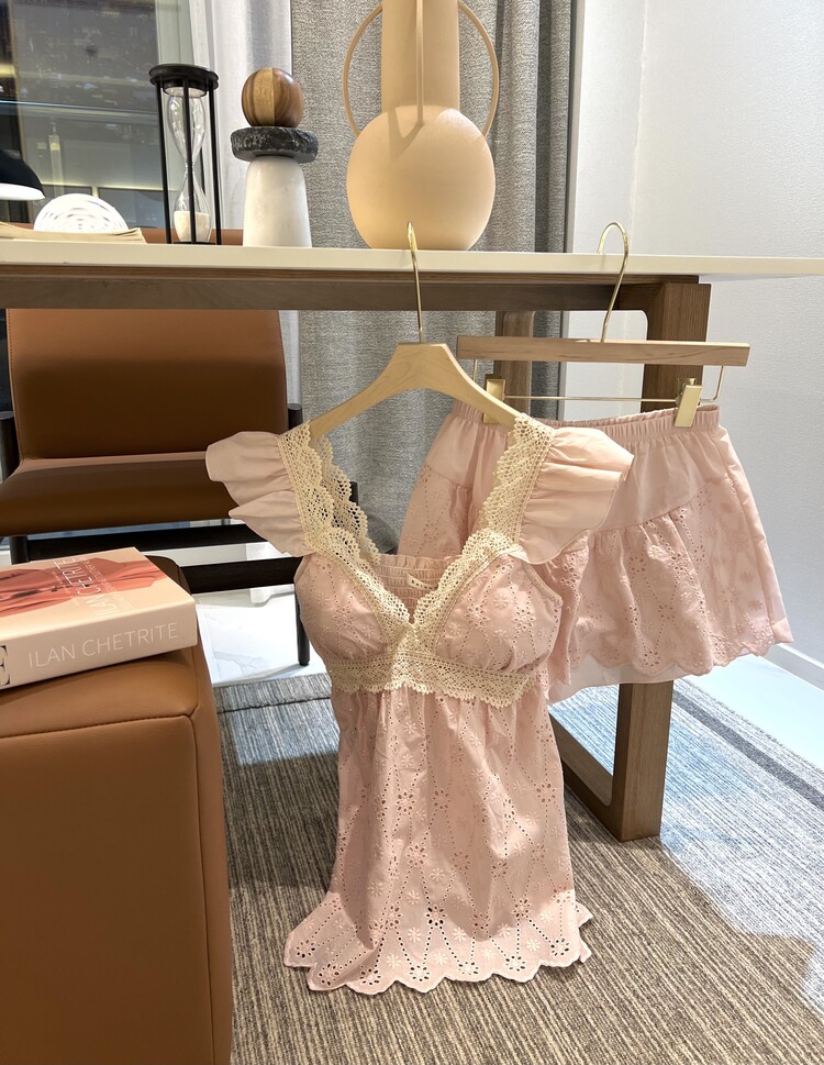 *Comment : 너무나 러블리한 무드가 돋보이는 파자마 세트 입니다. 전체적인 디자인 부터 디테일이 완벽하게 귀엽고 사랑스러운 느낌을 주어요. 물세탁하셔도 크게 변형이 없고 톡톡한 면소재로 소재감은 말할것없이 좋으며 피부에 닿는 촉감이 매우 부드럽고 편안합니디. 가슴부분 패드 기본 내장되어 있어 속옷 착용하지 않고 부담없이 착용하실 수 있습니다. 어깨부분은 풍성하게 프릴이 장식되어있어 귀여우면서 어깨라인을 예뻐보이게 해주고 전체적인 파이핑 레이스패턴이 고급스러움을 느껴지게 해주어요. 사이즈 고민없으시게 넉넉히 두가지로 준비했습니다. 홈웨어 좋아하시는 분들 적극 추천드리며 만족하실 디자인 입니다. 집들이 선물로도 좋으며 편안하게 집에서 생활하실때에도 아무거나 입는것 보다 나를 위한 예쁜 잠옷, 예쁜 홈웨어가 주는 기분전환과 행복이 특별한 것 같아요.^^ 자신있게 추천드립니다