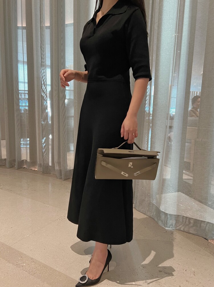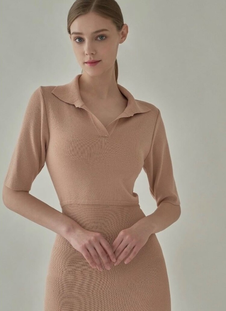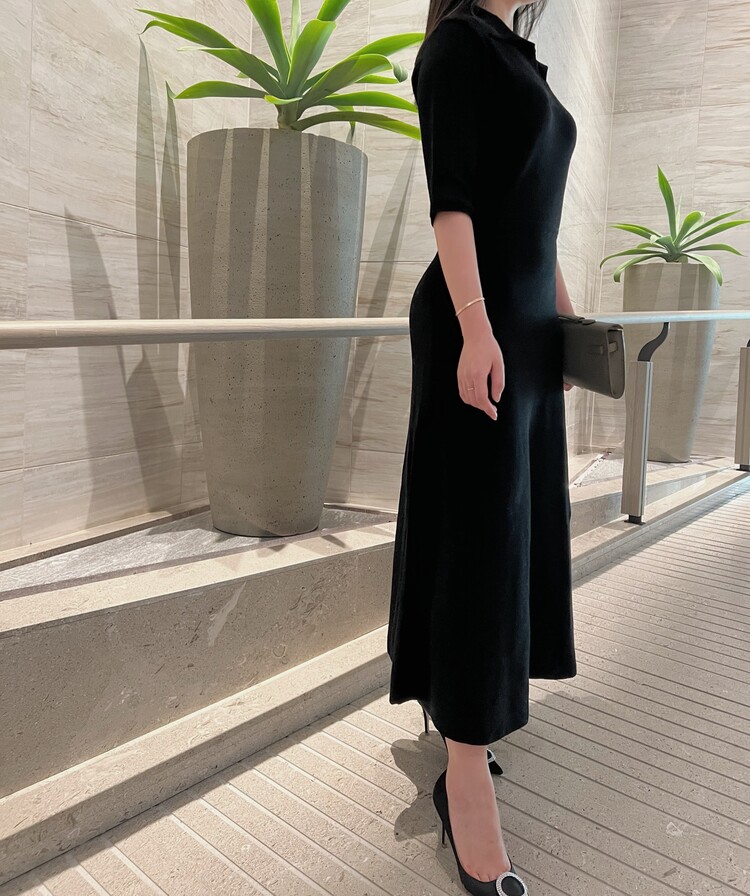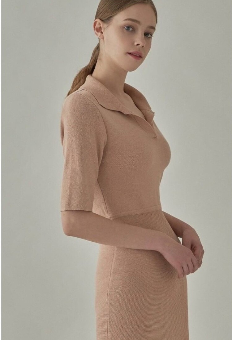 *Tip : 까슬거리지 않는 텐션감좋은 얇은 니트 소재의 원피스로 매년 사랑받는 셔츠 니트원피스 디자인입니다. 라인감이 우아하게 떨어져