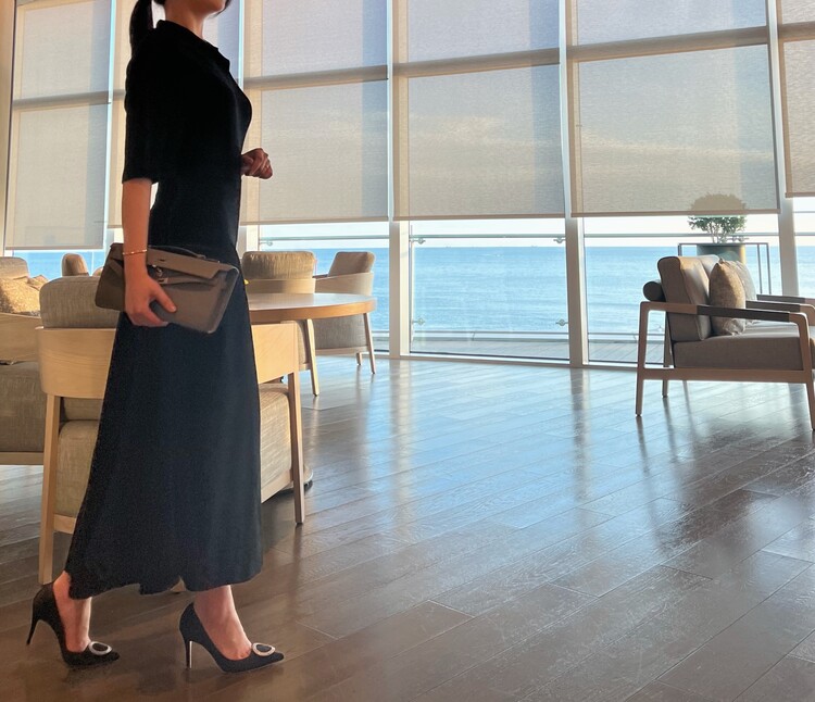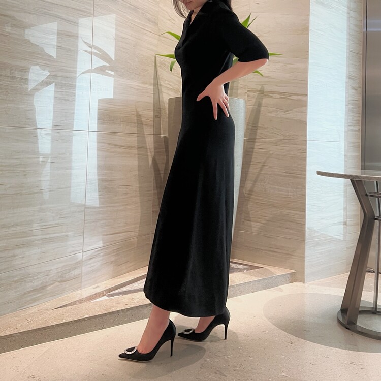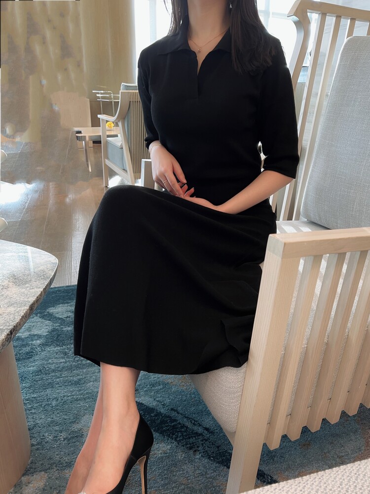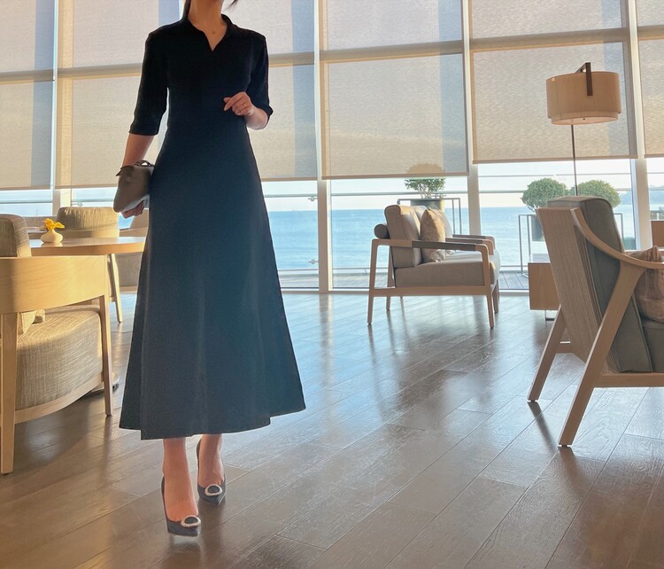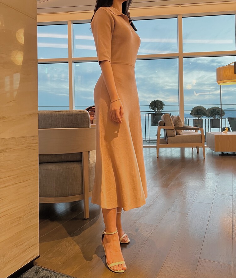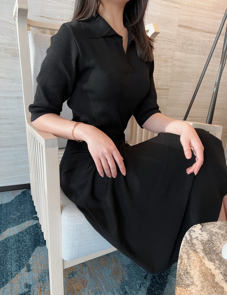 *Tip : 까슬거리지 않는 텐션감좋은 얇은 니트 소재의 원피스로 매년 사랑받는 셔츠 니트원피스 디자인입니다. 라인감이 우아하게 떨어져