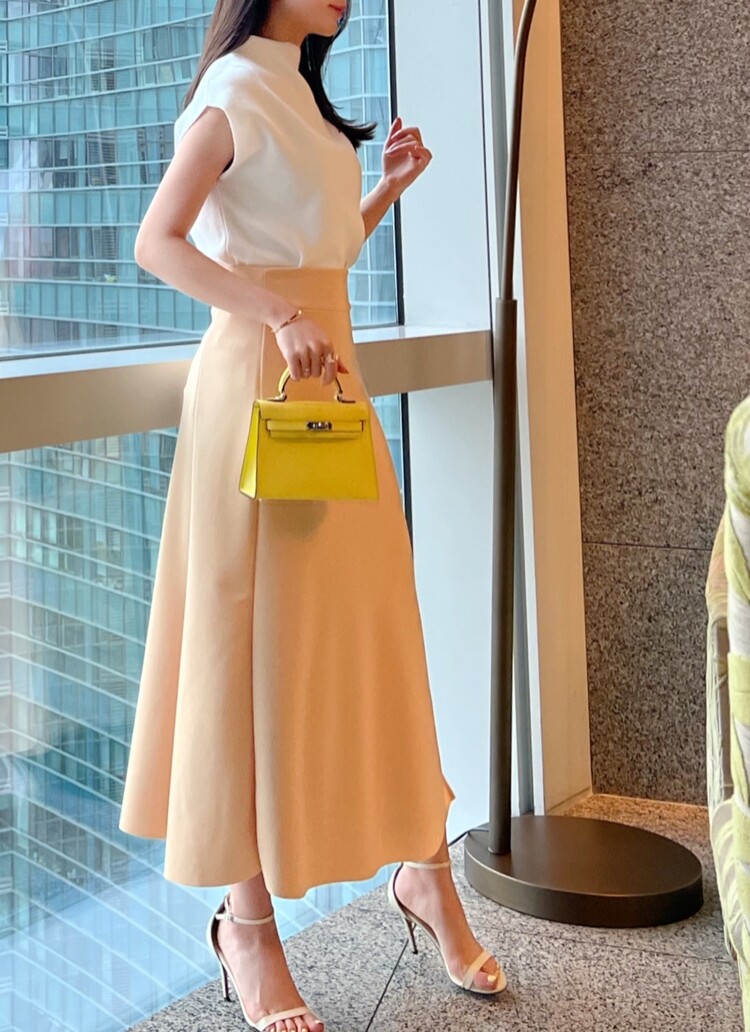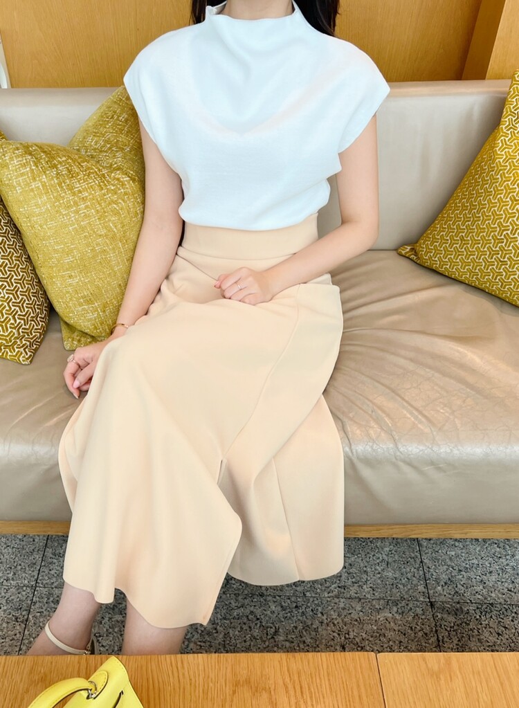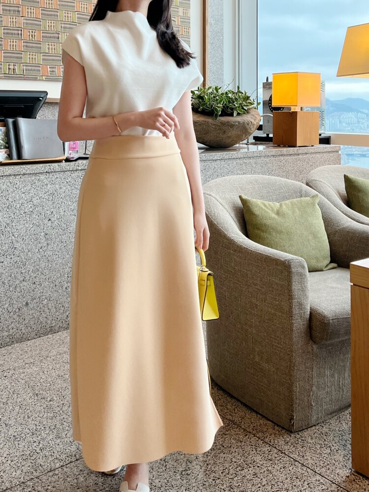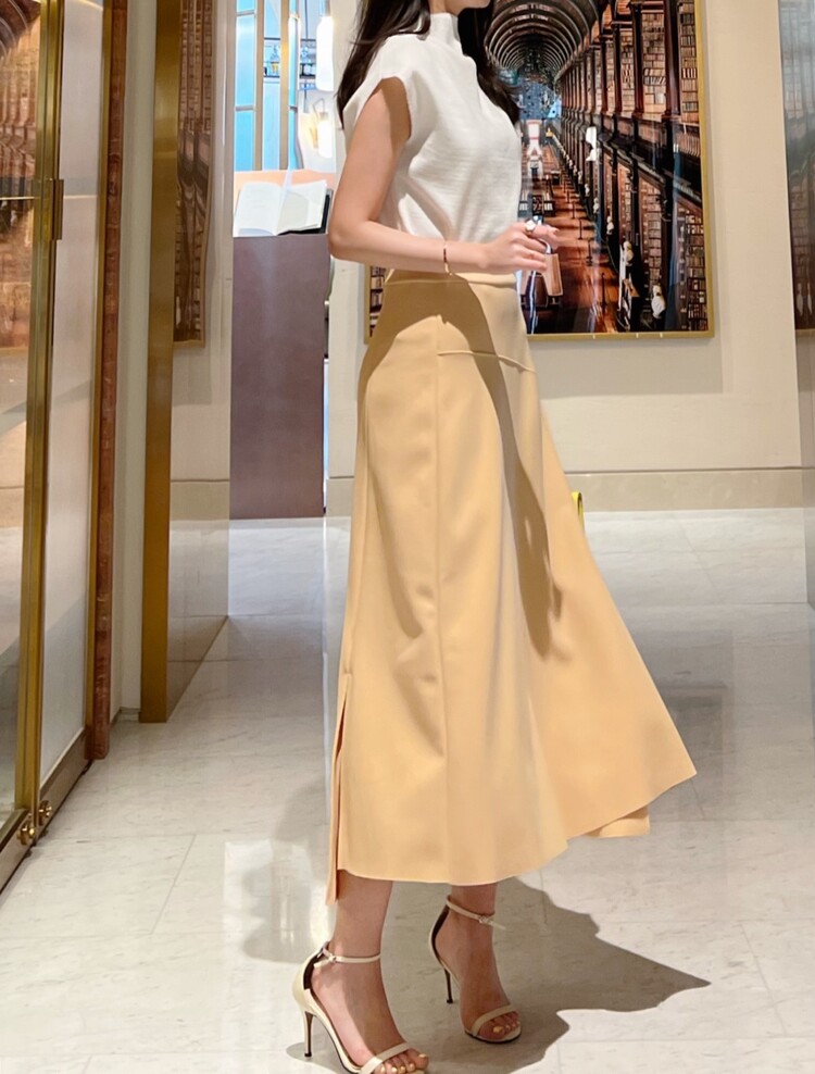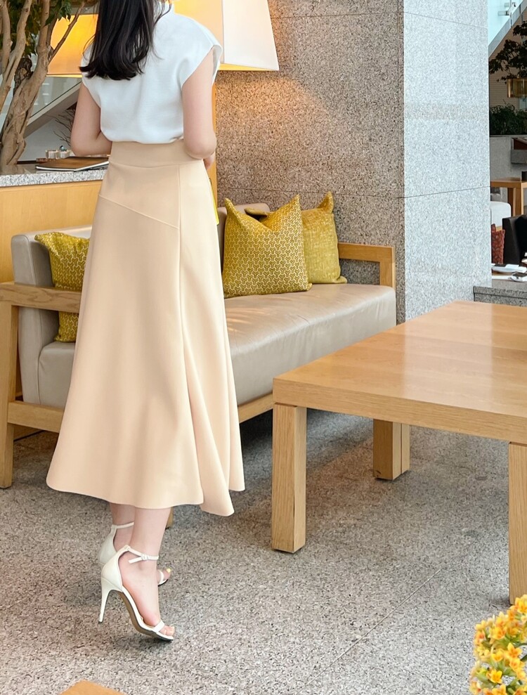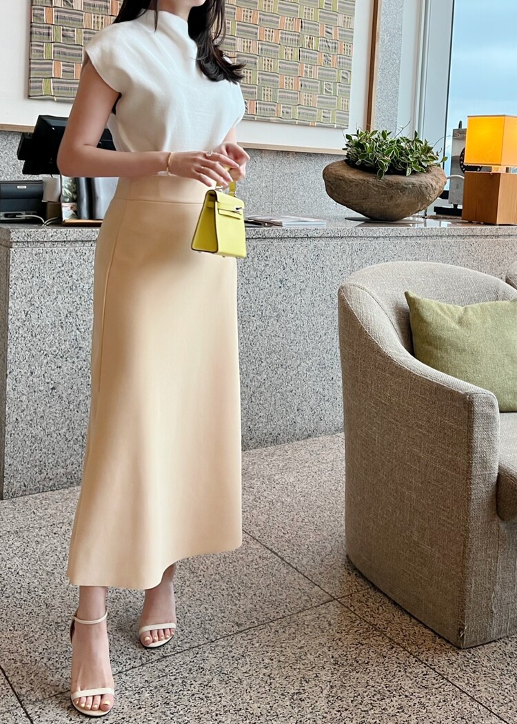 *Comments : 은은하고 고급스러운 파스텔톤의 옐로우 컬러가 매력적인 스커트입니다. 스판혼방소재로 신축성이 좋아 편안하며 허리전체 밴딩으로 착용감이 좋습니다. 전체적으로 간결하게 떨어지는 핏이 몸매를 예쁘게 보정해주고 옆 사이드 부분의 절개라인이 깊지 않게 들어가있어 다리가 길어보이는 효과와 우아한 느낌을 주어요. 과해보이거나 너무 화려해보이지 않으면서 세련되고 차분한 느낌의 미디 롱 스커트 추천드립니다.