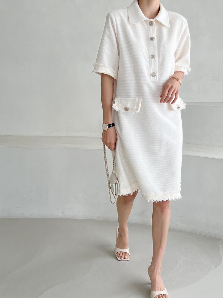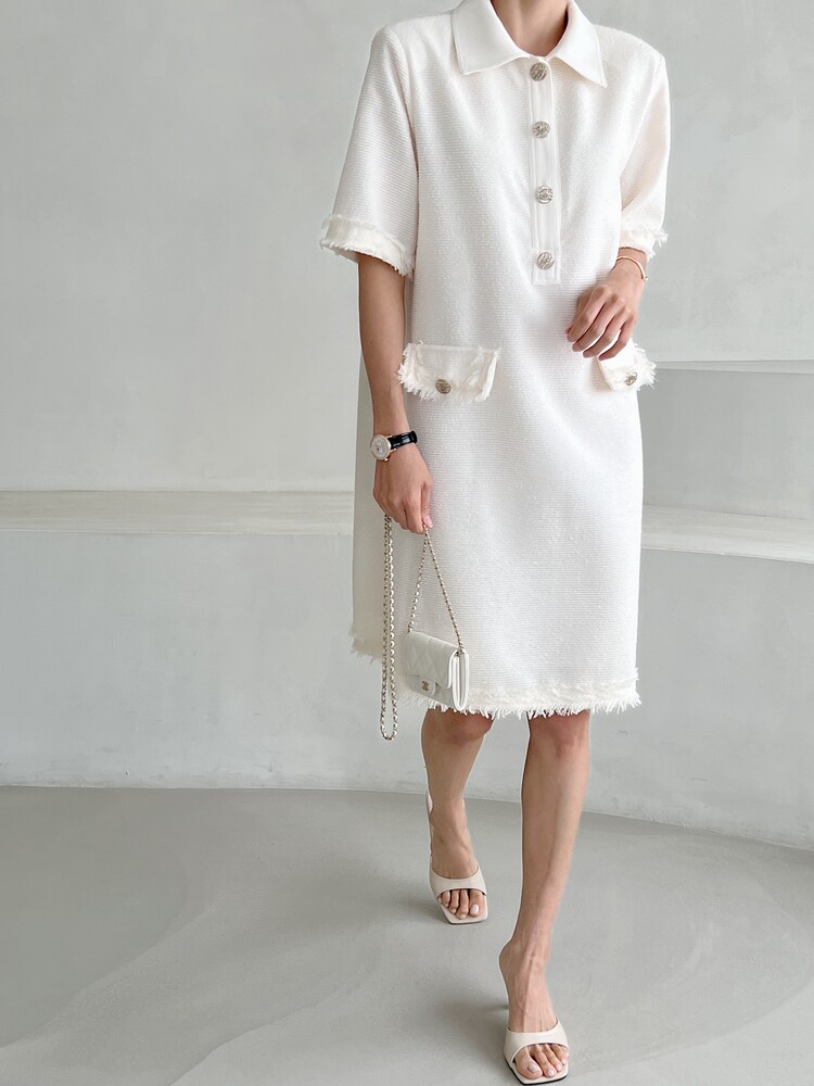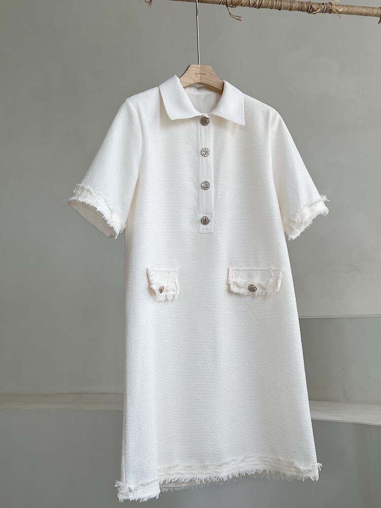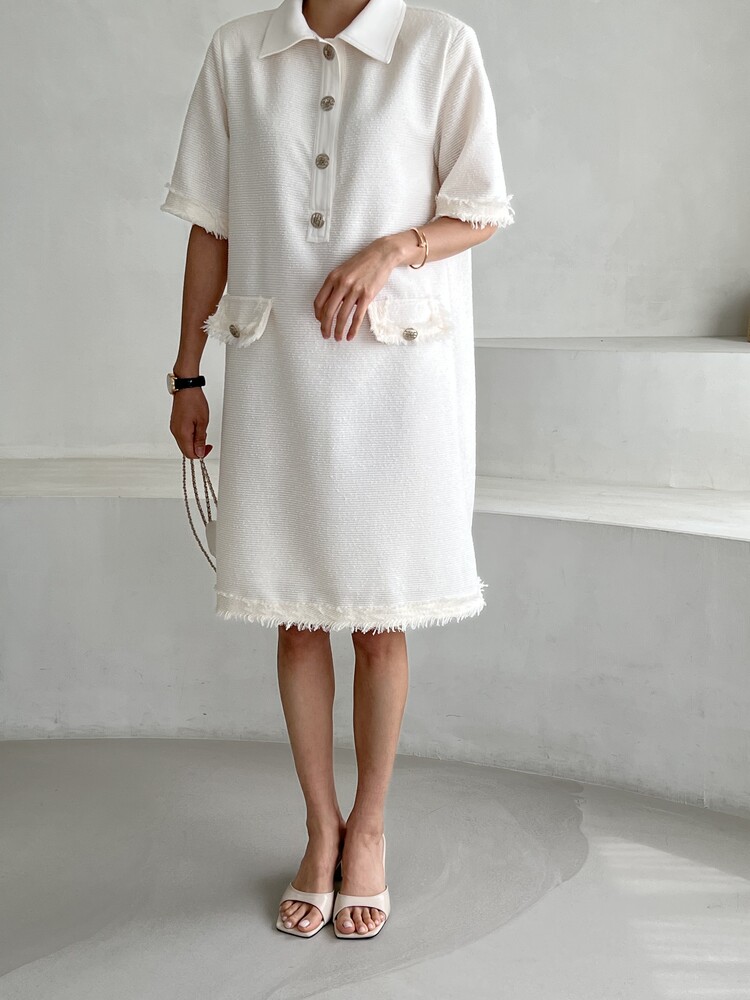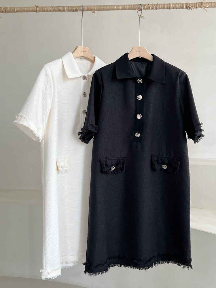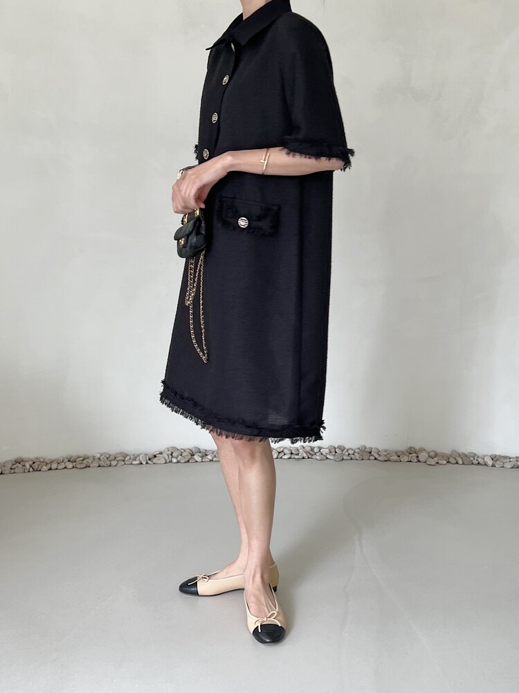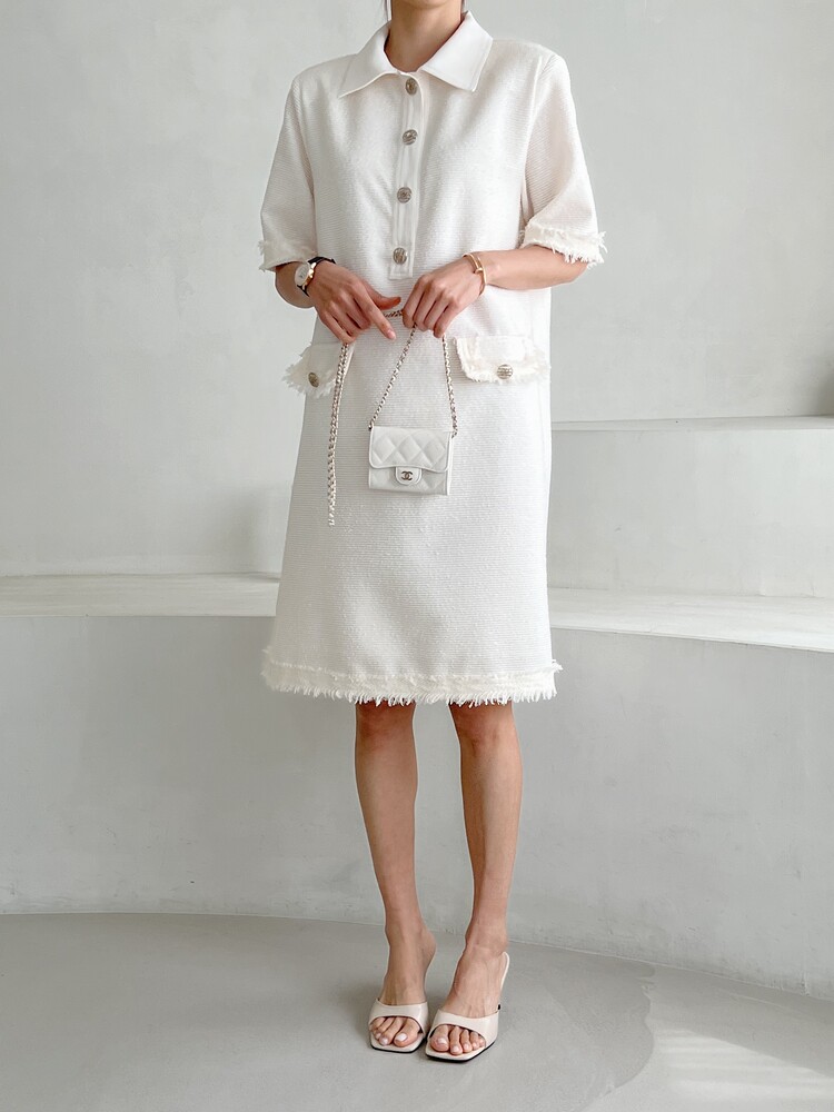 *Comment : 고급스러운 무드의 트위드 미니 원피스 입니다. 넉넉한 핏으로 편안하게 착용하실 수 있고, 미니 원피스이지만 너무 짧지 않는 미니기장감으로 부담없이 즐기실 수 있습니다. 고급스러운 단추 버튼 디테일과, 소매부분은 넉넉한 기장감으로 어깨라인과 팔뚝살을 슬림해 보이는 효과를 주었어요. 시원한 소재감으로 여름철에도 덥지 않게 착용하실 수 있어요. 단아하고 깔끔한 트위드 원피스 찾으셨다면 적극 추천드립니다♡