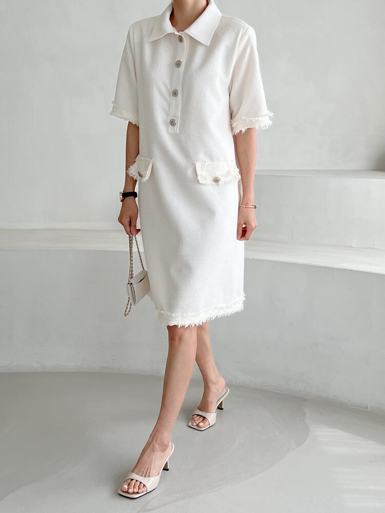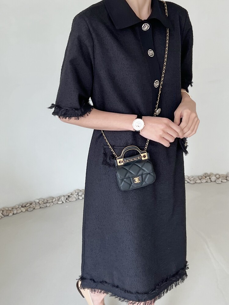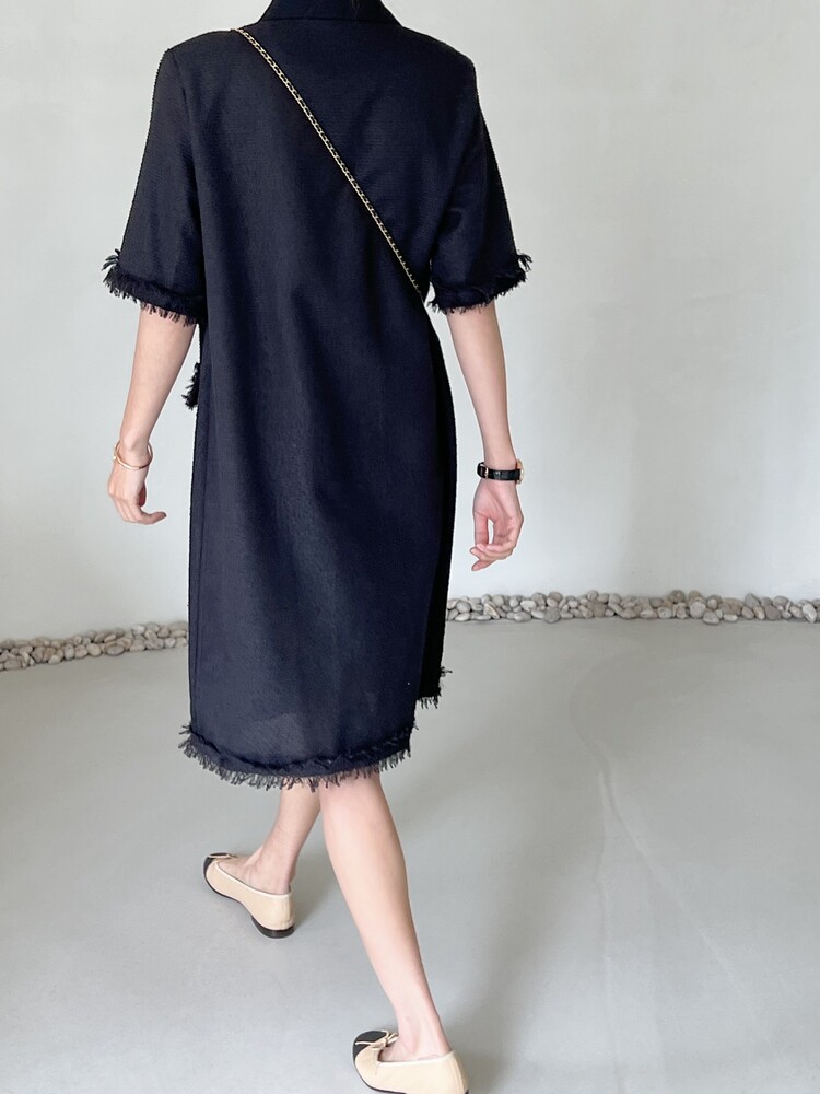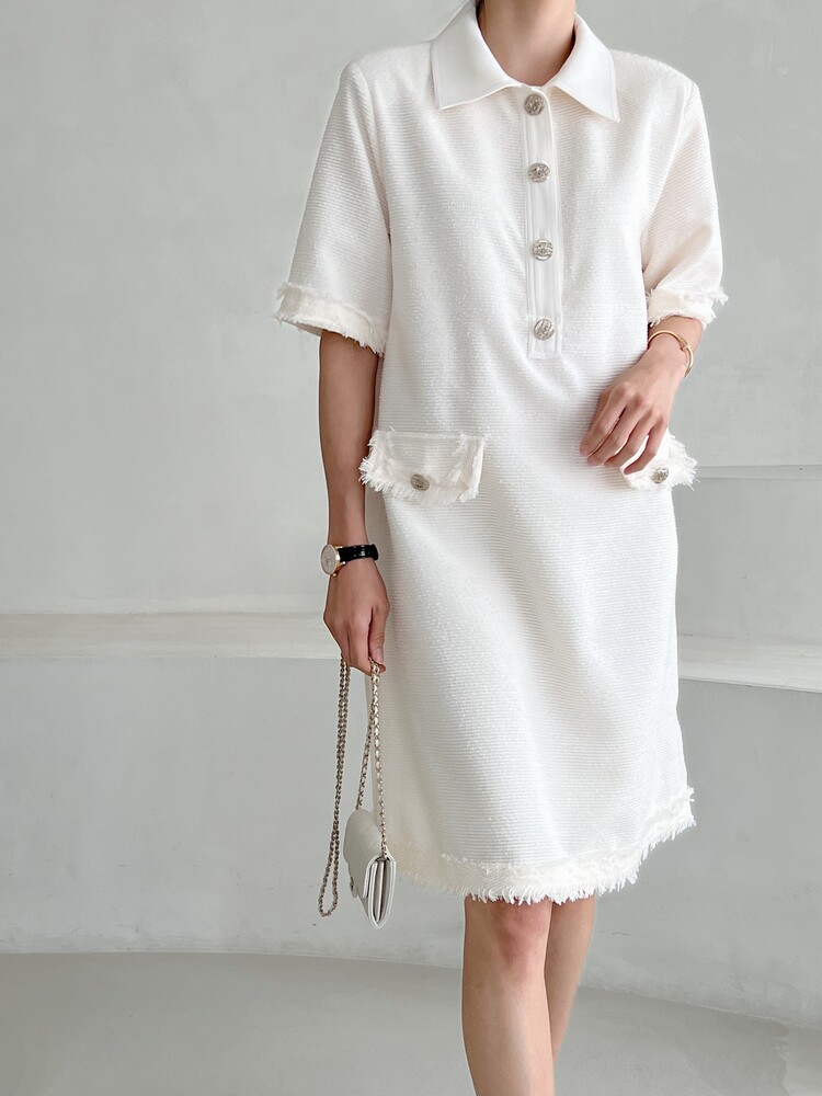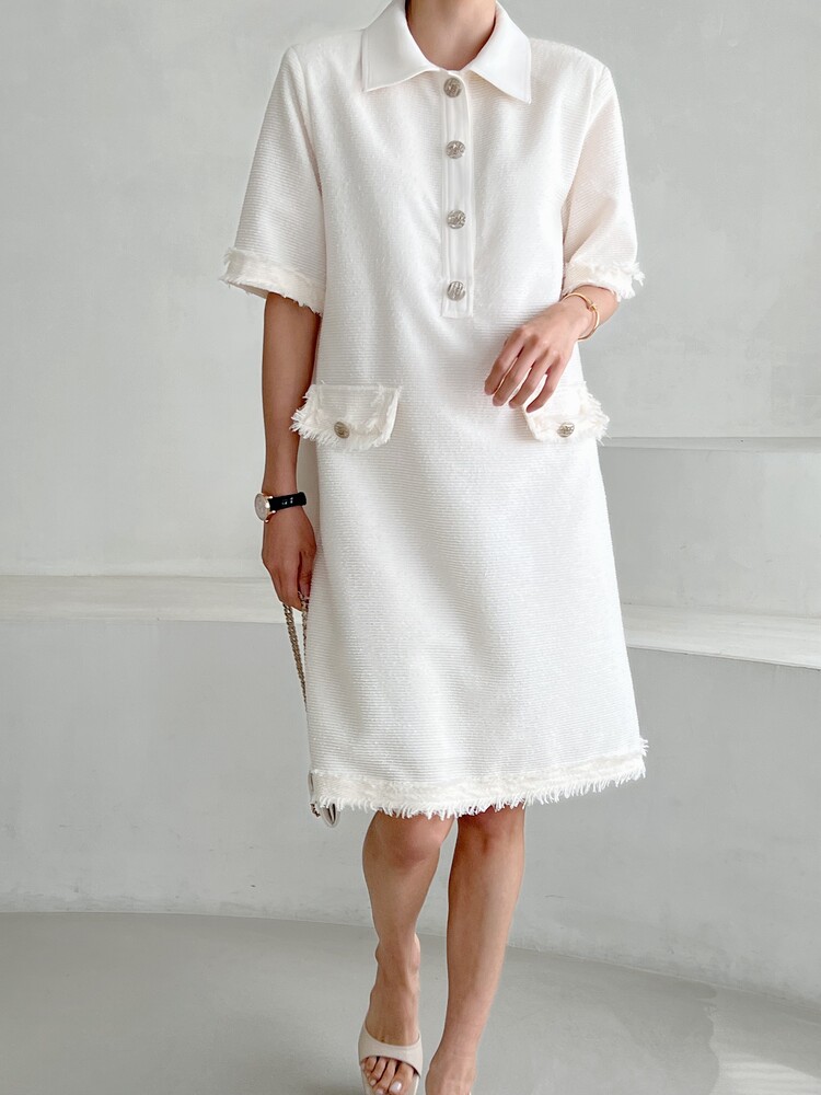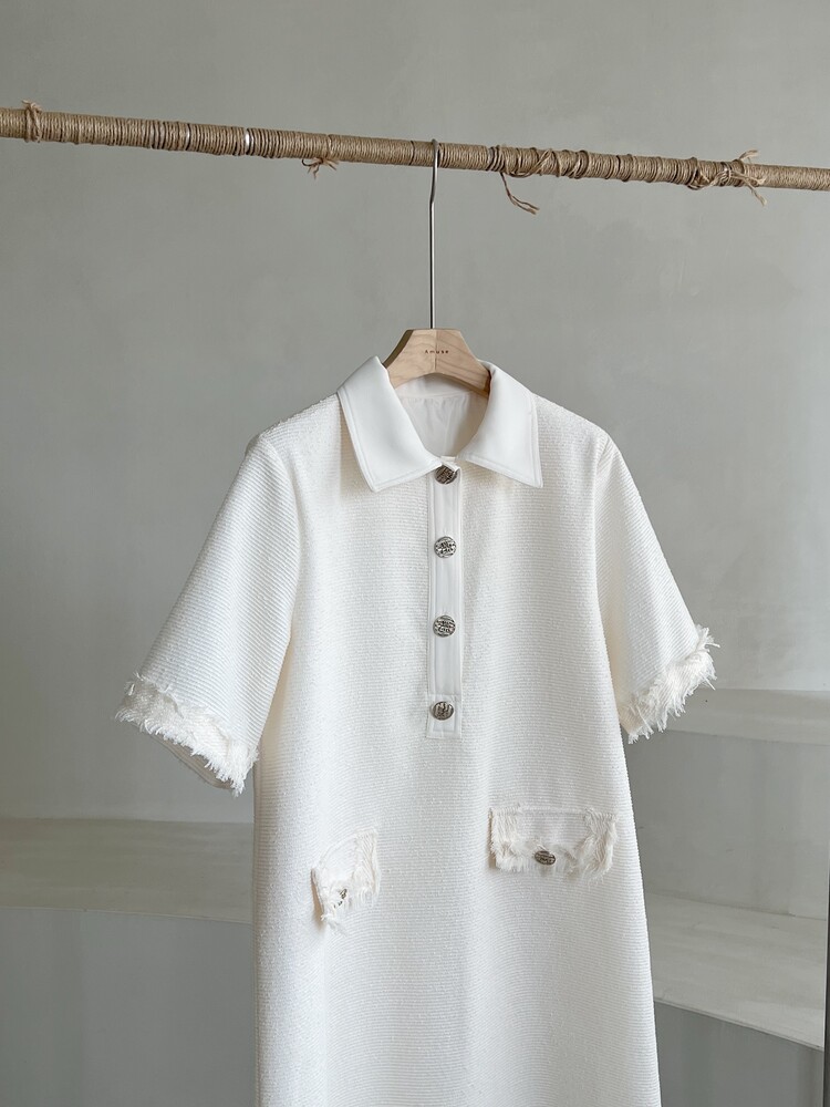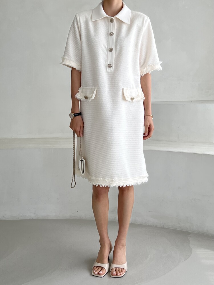 *Comment : 고급스러운 무드의 트위드 미니 원피스 입니다. 넉넉한 핏으로 편안하게 착용하실 수 있고, 미니 원피스이지만 너무 짧지 않는 미니기장감으로 부담없이 즐기실 수 있습니다. 고급스러운 단추 버튼 디테일과, 소매부분은 넉넉한 기장감으로 어깨라인과 팔뚝살을 슬림해 보이는 효과를 주었어요. 시원한 소재감으로 여름철에도 덥지 않게 착용하실 수 있어요. 단아하고 깔끔한 트위드 원피스 찾으셨다면 적극 추천드립니다♡