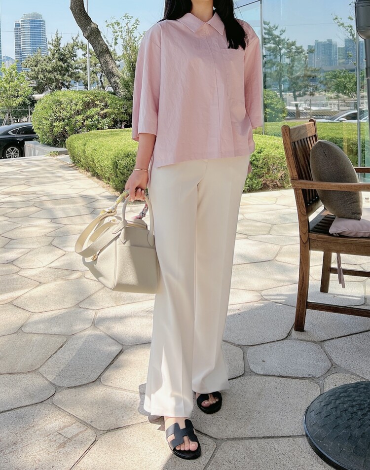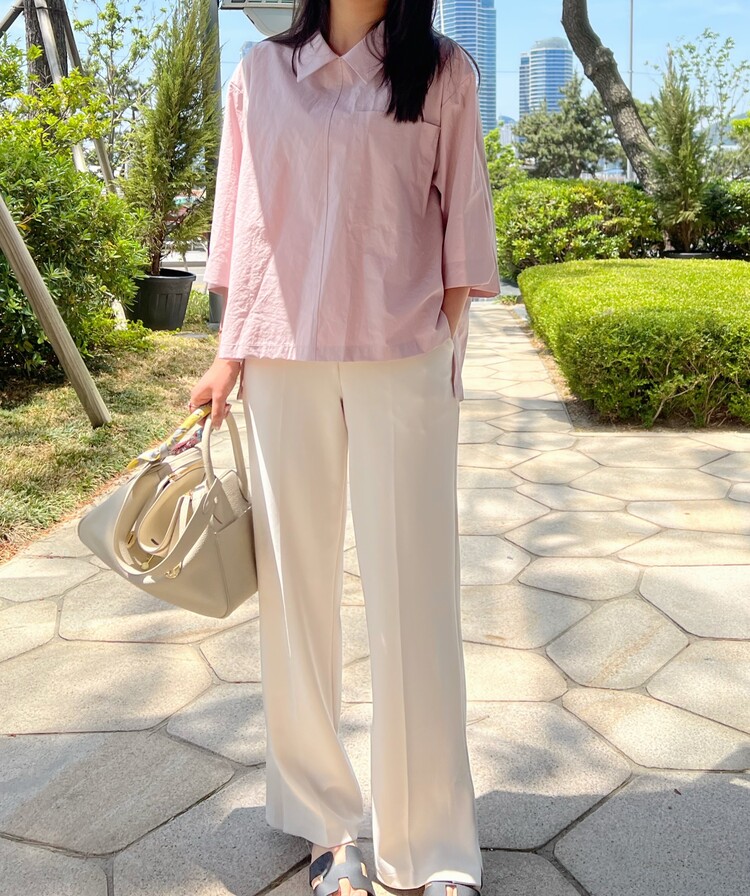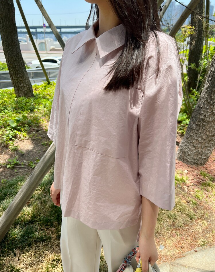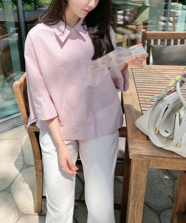 *Comment : 바이오 워싱 코튼100소재의 터치감이 매우 좋은 셔츠입니다. 컬러가 차분하게 매우 고급스러워요. 7부소매로 부한 느낌없이 딱 떨어지는 세련된 핏감에 넉넉한 소매너비와 가슴너비도 넉넉해서 77사이즈 고객님들까지 편안하게 착용가능하세요^^ 기장감도 딱 좋아서 팬츠안에 넣으셔서 스타일링 하셔도 되고 빼고 입으셔도 기장감이 딱 예뻤어요. 저는 개인적으로 루즈하게 빼서 입는게 더 좋은 느낌이에요. 백디테일의 뒷단추로 더욱 더 세련미가 느껴지며 고시감이 좋은 여름 셔츠 적극 추천드립니다. 브랜드 퀄리티로 손색없으며 좋은 가격으로 소개해드립니다 :)