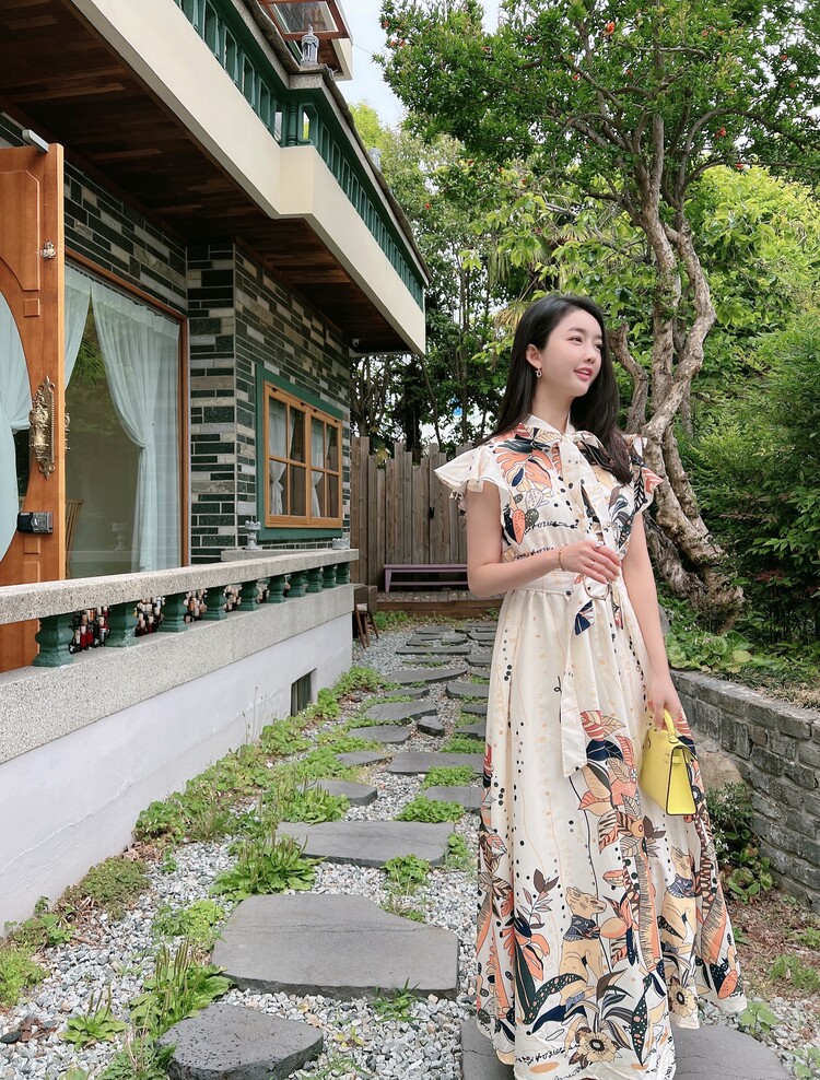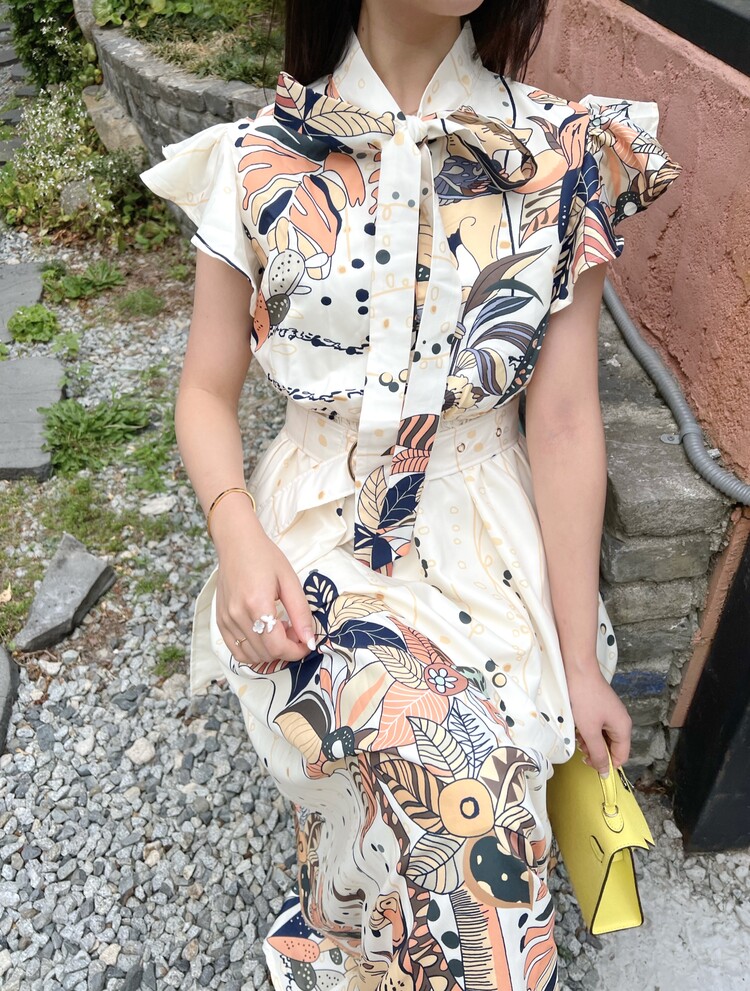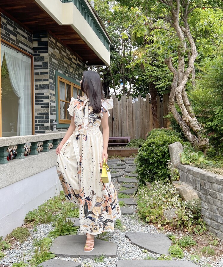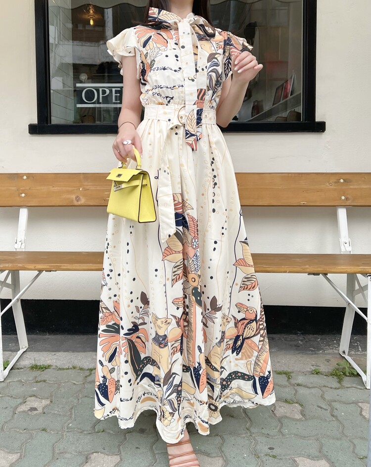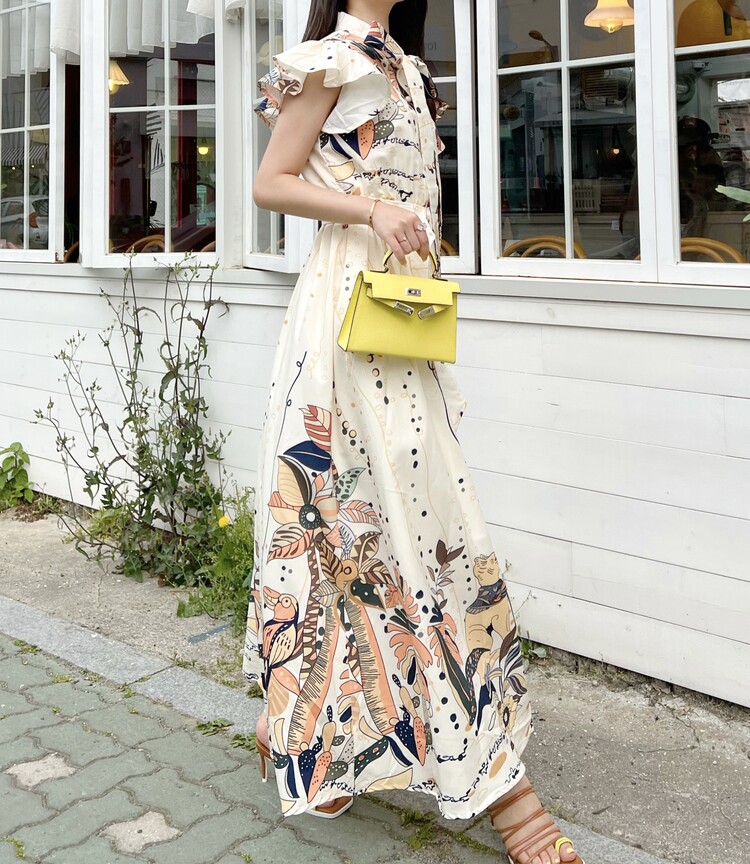 *Comment : 유니크한 나염 프린팅과 여성스러운 프릴 디테일이 화사하며 노블한 분위기를 주는 실루엣이 예쁜 원피스 입니다. 두께감 얇고, 챠르르 떨어지는 아주 가볍고 경쾌한 핏감이에요. 안감이 부착되어 있어 비침 걱정없으며, 허리부분은 스트랩으로 몸에 맞게 부드럽게 늘어나 조임 없이 편안하게 착용하실 수 있습니다. 간편하지만 멋스럽고, 단독으로도 충분히 완벽한 스타일링하실 수 있는 매우 매력적인 원피스입니다. 일상에서도 여리여리한 느낌으로 과하지않으며 데일리로 착용하시고, 나들이, 리조트 휴가룩으로도 적극추천드립니다.