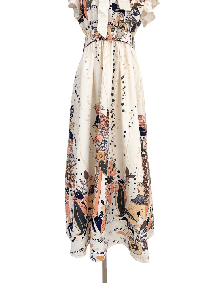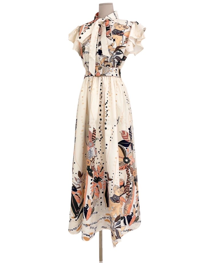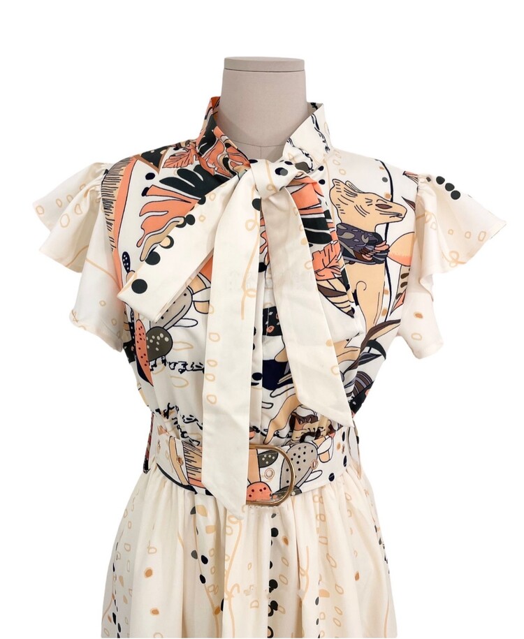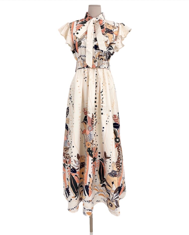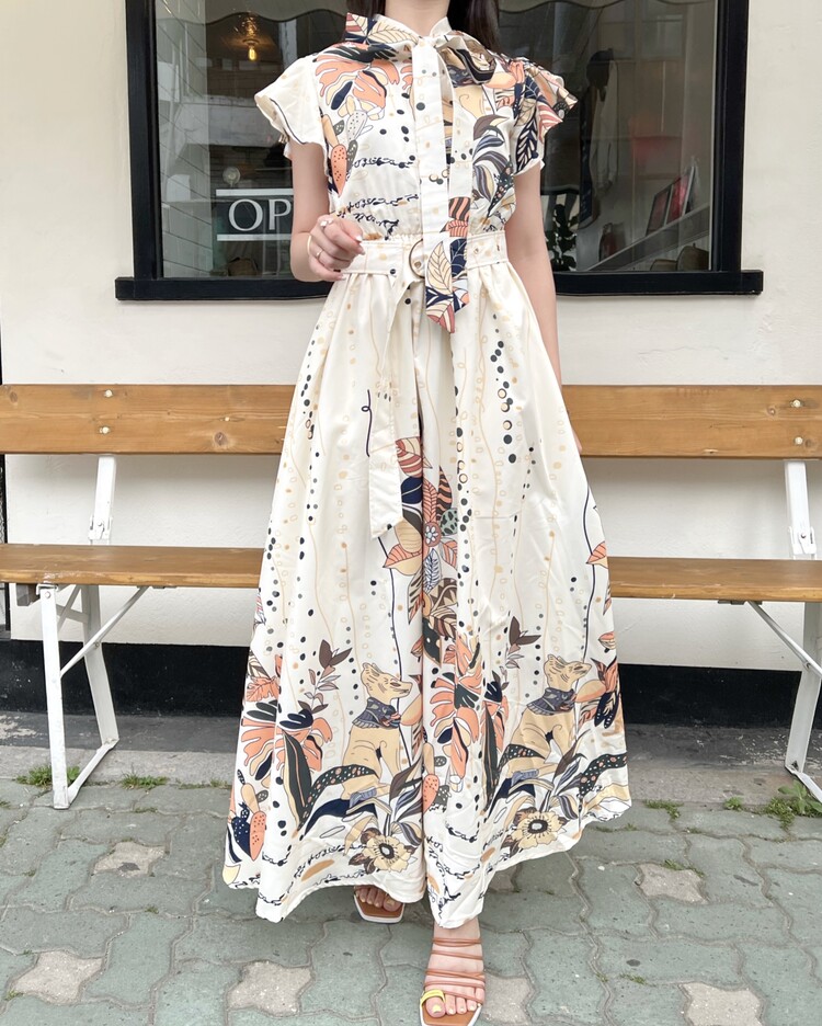 *Comment : 유니크한 나염 프린팅과 여성스러운 프릴 디테일이 화사하며 노블한 분위기를 주는 실루엣이 예쁜 원피스 입니다. 두께감 얇고, 챠르르 떨어지는 아주 가볍고 경쾌한 핏감이에요. 안감이 부착되어 있어 비침 걱정없으며, 허리부분은 스트랩으로 몸에 맞게 부드럽게 늘어나 조임 없이 편안하게 착용하실 수 있습니다. 간편하지만 멋스럽고, 단독으로도 충분히 완벽한 스타일링하실 수 있는 매우 매력적인 원피스입니다. 일상에서도 여리여리한 느낌으로 과하지않으며 데일리로 착용하시고, 나들이, 리조트 휴가룩으로도 적극추천드립니다.