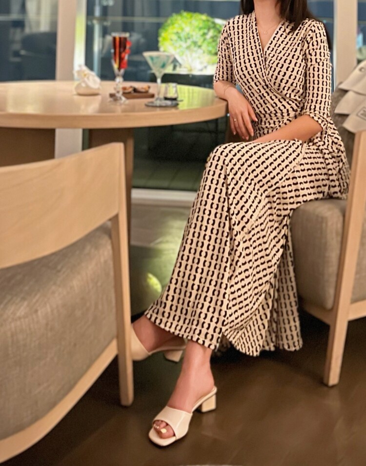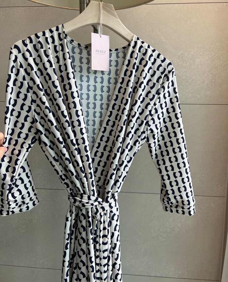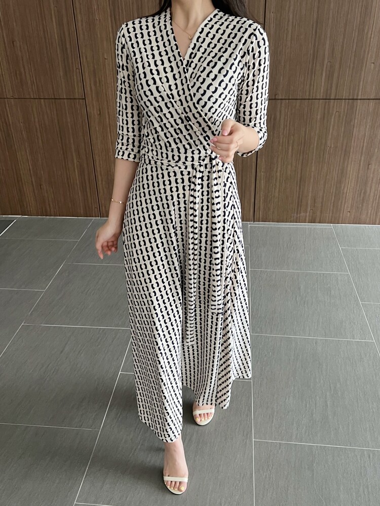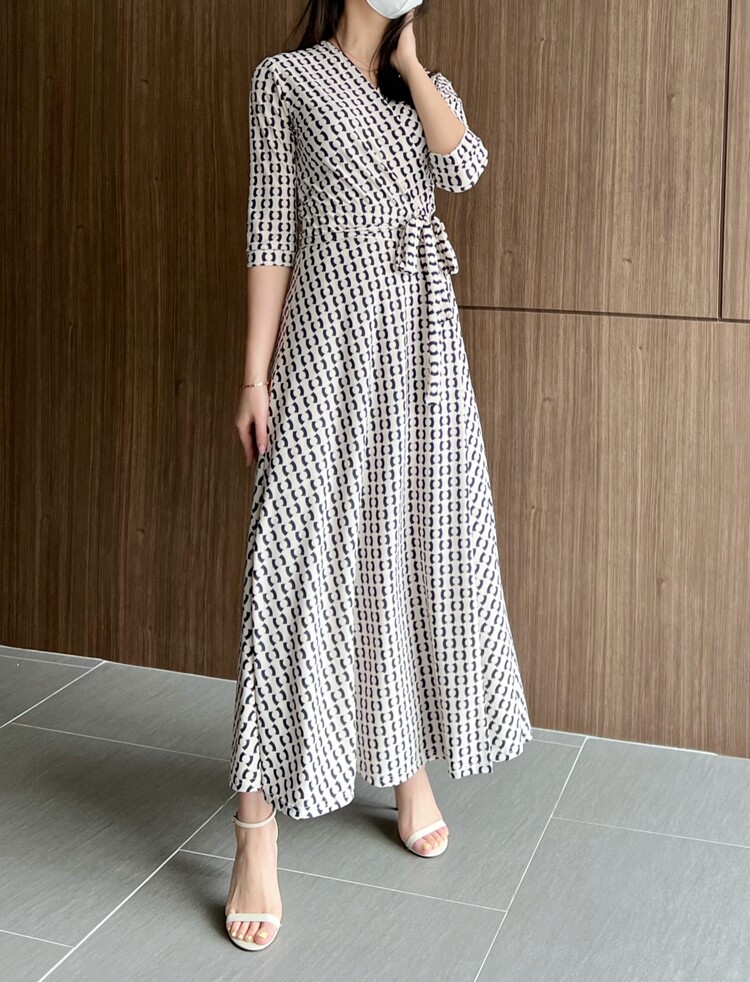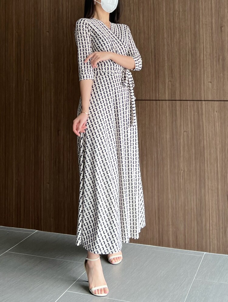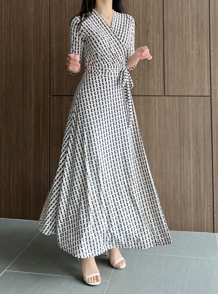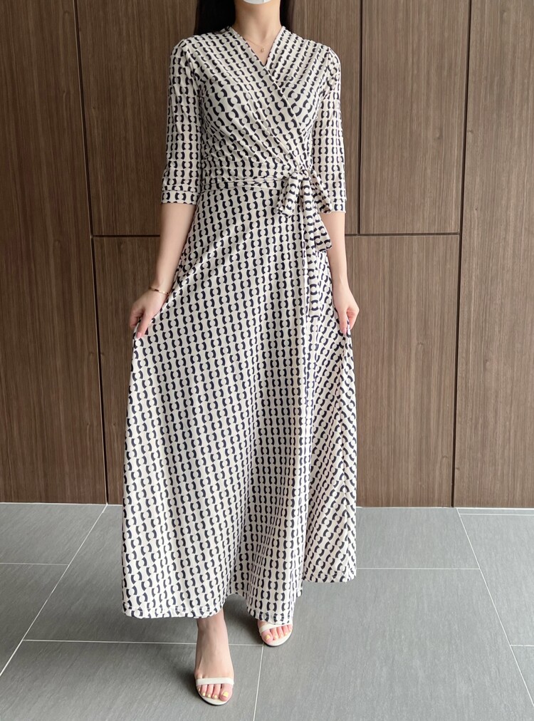 *Comments : 데일리로 편안하게 착용 가능한 하이퀄리티 랩 원피스 입니다. 부드러운 터치감에 신축성이 좋은 폴리 소재로 자연스럽고 가볍게 몸에 착 감기는 핏이며 탈착용이 아주 편합니다. 얼굴이 환해 보이는 화이트톤의 모던한 롱 랩원피스이며 롱한 기장감에 사이즈나 체형에 구애 없이 착용이 가능합니다. 광폭원단을 사용했으며 풍성한 훌 핏을 연출해주며 다리벌어짐 이나 가슴 벌어짐이 전혀 없어서 부담없이 착용 가능하세요. 봉제선이 드러나지않고 자연스럽게 몸에 감기며 깔끔하게 클로징됩니다. 어디에서나 잘 어울리며 꾸안꾸 라운지웨어로 활용도가 높으며 고급스러운 패턴으로 단품으로도 충분한 포인트를 줄수있는 랩 원피스 적극 추천드립니다.