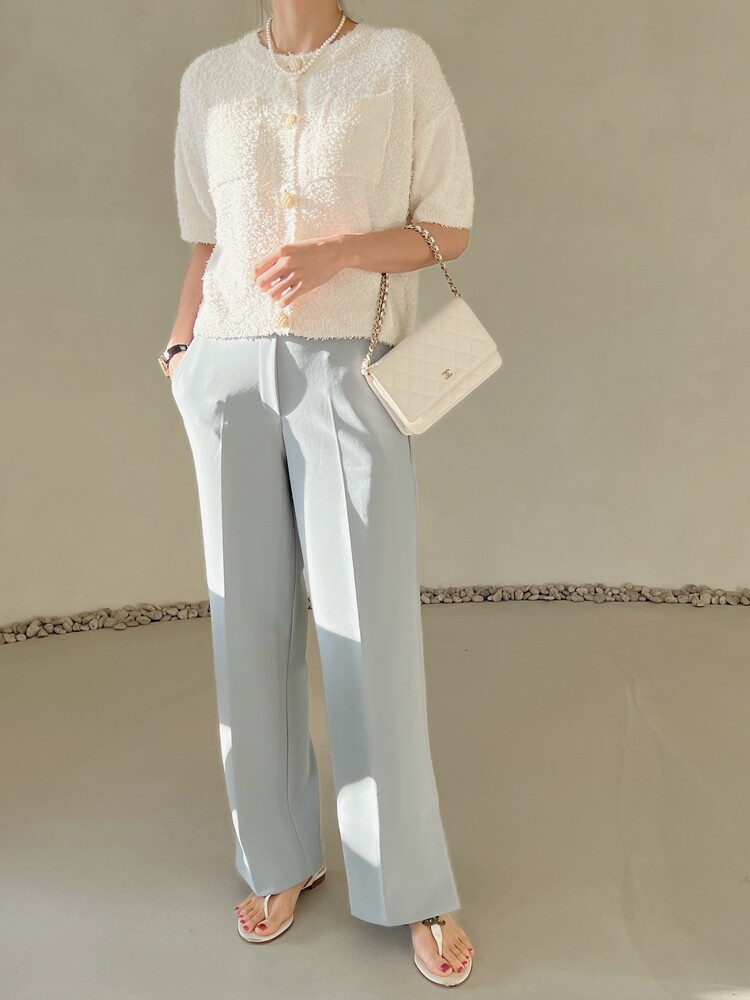 *Comment : 허리 전체의 넓은 밴딩으로 매우 편안한 착용감을 자랑하는 슬랙스 팬츠입니다. 소재감부터 달라도 확실히 다른 뛰어난 고급 소재감과 터치감이 매우 좋으며 포토샵한듯 뚝 떨어지는 라인의 깔끔한 핏을 연출해줍니다. 허리밴딩 디자임에도 불구하고 사이즈도 3가지로 나뉘어 제작되어, 더욱 더 편안하게 착용하실 수 있으세요. 소재의 장점과, 복원력이 우수하며 신축성 또한 좋아요. 휘뚜루 마뚜루 데일리룩으로도 완벽하고, 중요한 모임이나 자리에도 셔츠나 블라우스, 니트 등등 고급스러운 스타일링이 가능합니다. 오랜시간동안 옷장에서 두고두고 착용하실 수 있는 기본 밴딩 슬랙스로 적극추천드립니다.