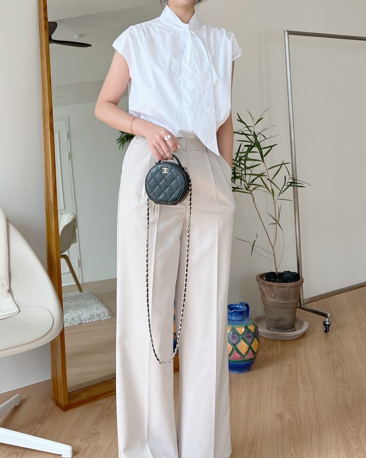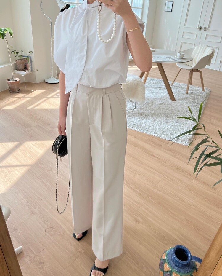 *Comment : 폴리소재의 한여름까지 착용가능한 터치감 좋은 여름 슬랙스 팬츠 소개해드려요. 원단감이 매우 가벼워 바디에 닿는 촉감이 매우 부드럽고 편하며, 가격 대비 매우 좋은 퀄리티 입니다. 전체적으로 타이트하게 붙지않으면서 레그라인에 딱 떨어지는 날씬한 핏을 연출해줍니다. 사이즈 체형에 맞게 넉넉히 초이스 하실 수 있으며 블라우스, 기본 티셔츠, 자켓 등등 스니커즈에 캐쥬얼룩으로도, 오피스룩으로도 다양하게 스타일링하실 수 있는 기본아이템으로 가벼운 슬랙스 적극 추천드립니다.