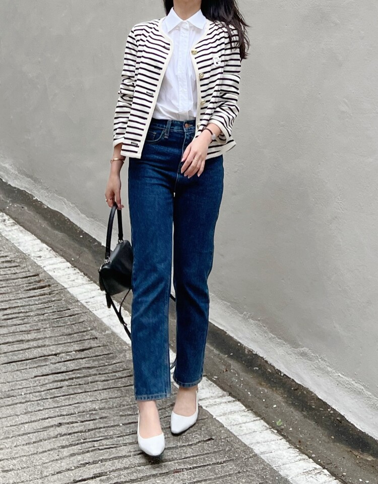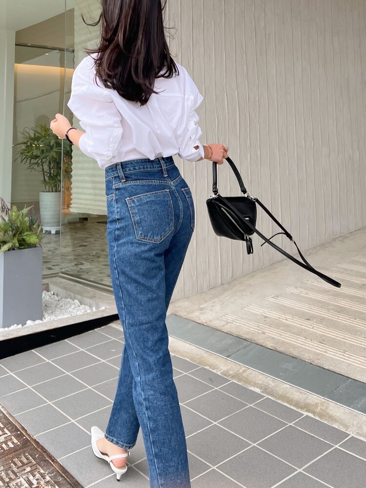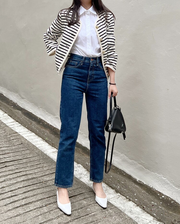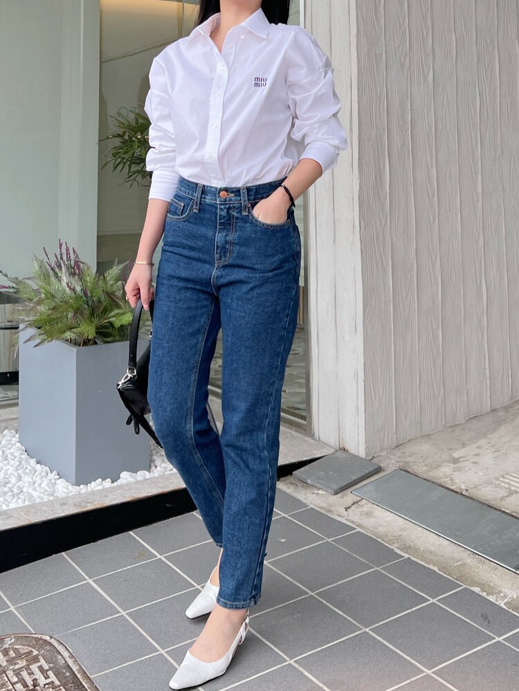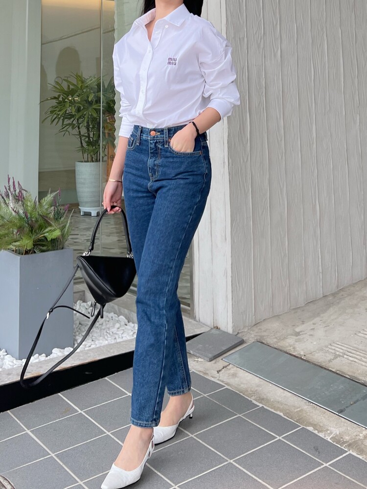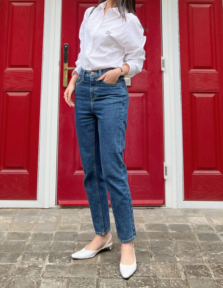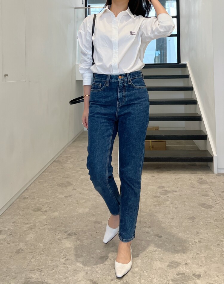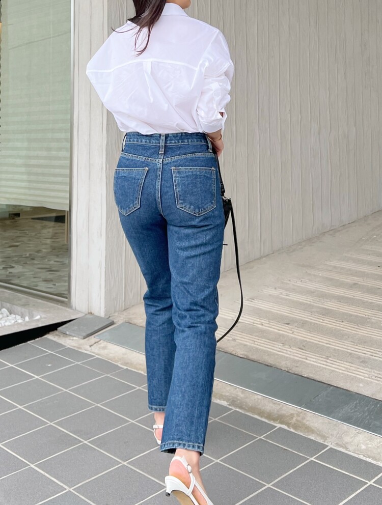 *Comment : 어디에나 깔끔하게 스타일링 하기 좋은 데님 진 입니다. 엉덩이부터 허벅지 발목 까지 일자로 똑 떨어지는 라인이라 다리가 일자로 곧고 길어 보이는 효과를 주어요. 유행 타지 않는 슬림하게 떨어지는 일자 핏으로 발목이 살짝 드러나는 기장과 사계절 내내 즐기기 좋은 두께감입니다. 데님 진 제품은 입어보지 않으면 핏을 정확히 알기 어려워 더욱 더 신중하게 셀렉한 상품이라 만족하실 만한 제품으로 자신있게 소개해 드립니다. 살짝 하이웨이스트 느낌이라 배를 딱 잡아주며 편안한 느낌이에요. 뒷부분 힙 라인 부분도 정말 편하면서 엉덩이가 부해보이지않고 적당히 업되보이는 청바지에요. 핏, 워싱, 착용감 모두 입어보시면 정말 만족하시면서 계속 편안하게 손이 가는 데일리 제품으로 자신있게 추천드립니다.