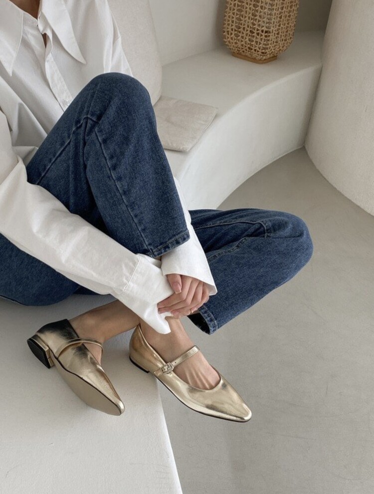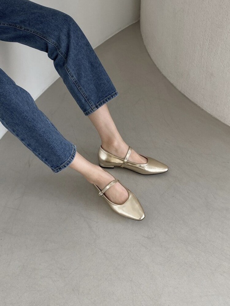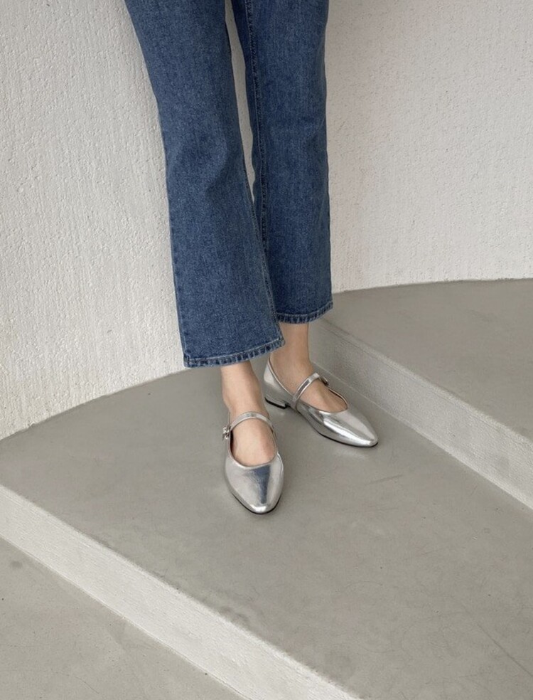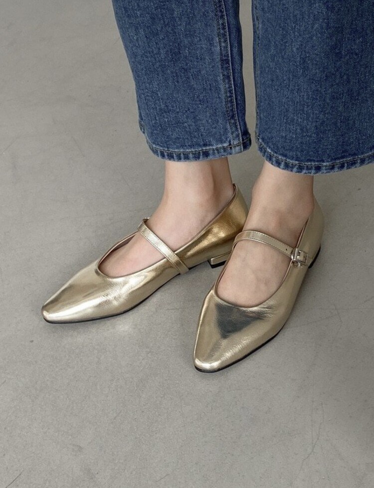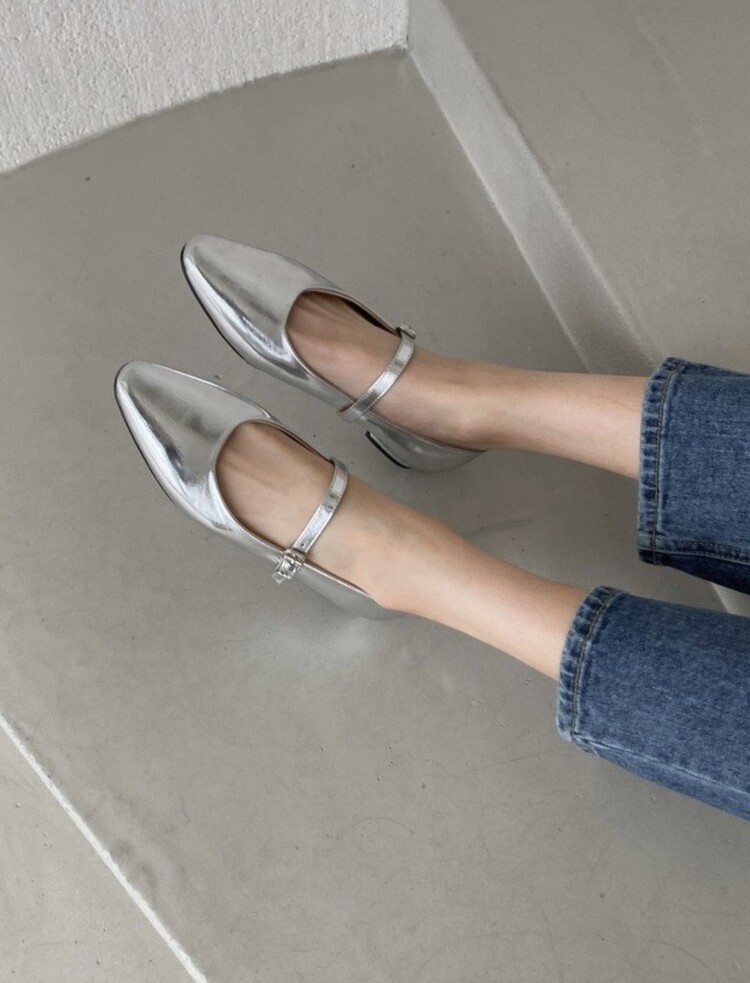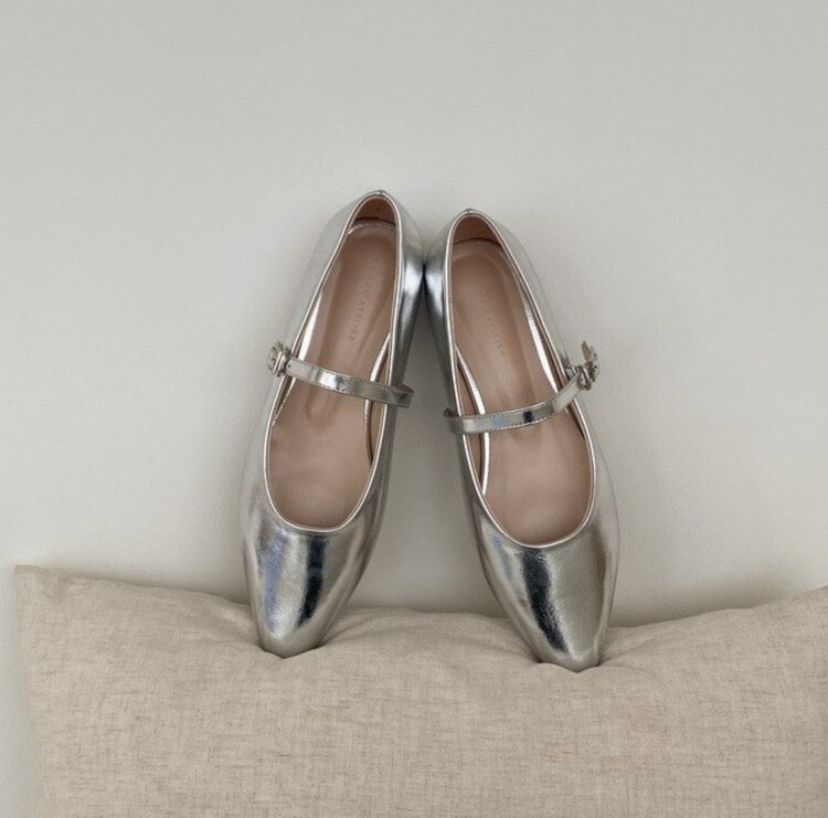 *Comment : 여성스럽고 심플한 데일리 메리제인 슈즈 소개해드립니다. 메탈릭 컬러가 우아하게 돋보이는 매력적인 슈즈에요. 골드와 실버가 포인트가 되며 어디에나 잘 어우러지며 발등부분 밴딩으로 벗겨지지 않는 편안한 착화감와 더욱 더 여성스러운 쉐입을 연출해줍니다. 앞코는 부드러운 스틸레토의 쉐입으로 발을 더욱 슬림하게 보이고 여성스럽게 연출해줍니다. 리얼 가죽은 아니지만 자연광에서의 메탈릭 컬러가 너무 고급지며 예뻐보였고 높은 퀄리티로 착용해보시면 만족하실거에요. 이지하게 데일리로 신으실 메리제인 슈즈 추천드립니다.